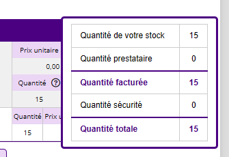 Les informations s'affichent maintenant dans un tableau au survol de l'icone '?' (point d'interrogation) située dans la colonne 'Quantité'.